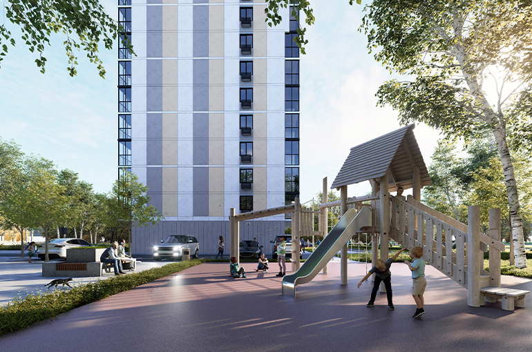 - Просторные жилые зоны площадью от 27 до 66 м².
