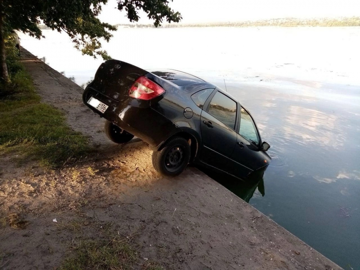 Капот отечественной легковушки ушел под воду. Что же этому предшествовало, остается большой загадкой. Специально ли был потоплен автомобиль или же это вышло случайно из-за человеческой ошибки – неизвестно.
