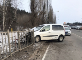Сначала он врезался в машину, а затем эта машина врезалась в забор.