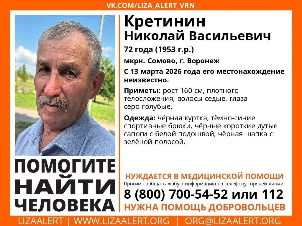 В Воронежской области продолжаются масштабные поиски 72-летнего Николая Васильевича Кретинина, который бесследно исчез по пути в магазин.
