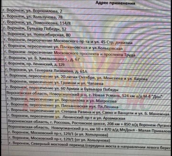 Список с местоположением камер на ремень просочился в сеть. Перечень разместили в группе ВК «Мой и твой Воронеж».