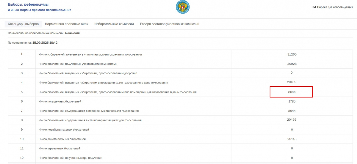 Так, Аннинский район во главе с Василием Авдеевым, где традиционно фиксируются аномальные результаты во время выборов, не изменил себе и в 2025 году.