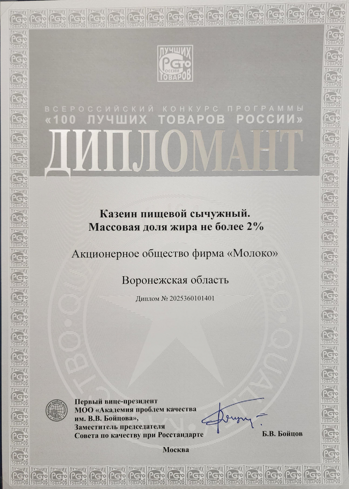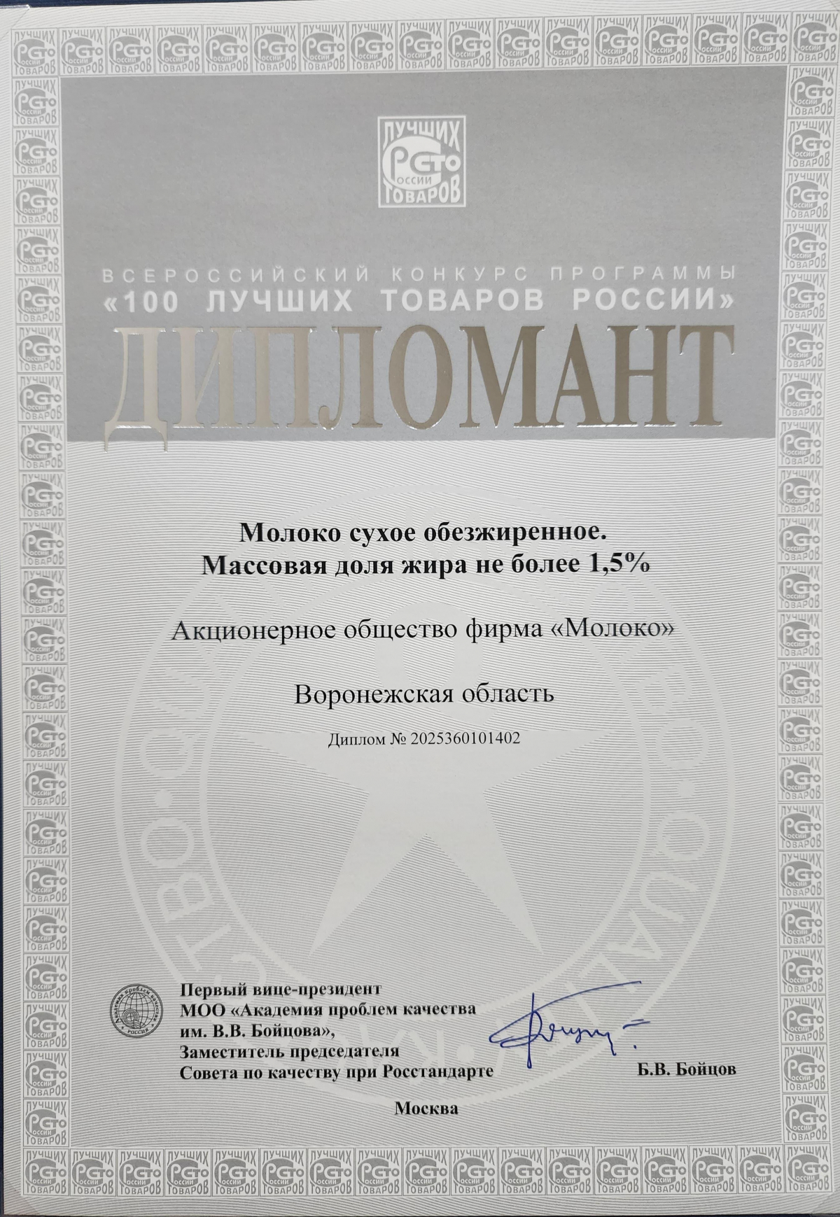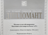 АО фирма «Молоко» из Россоши попала в список победителей XXVIII Всероссийского конкурса программы «100 лучших товаров России»