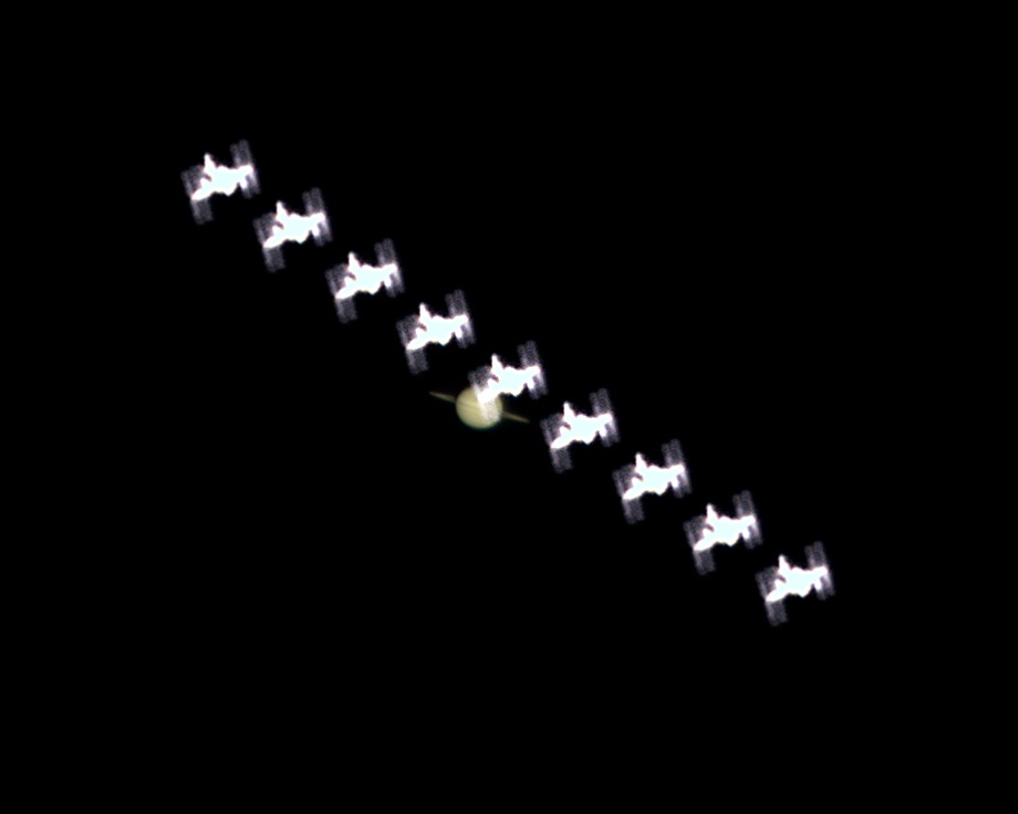 Обычно яркость станции значительно превосходит яркость планеты, из-за чего при съёмке возникают сложности - либо пересвечивается станция, либо Сатурн едва заметен.