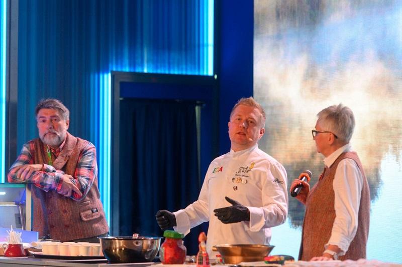 А теперь к маленьким, но забавным и интересным деталям. Параллельно шел гастрономический фестиваль «Традиции Воронежской области». Кормил гостей на нем президент Ассоциации кулинаров и рестораторов Черноземья Дмитрий Выродов. Он вместе с известными бренд-шефами воронежских заведений удивлял публику фирменными блюдами и напитками с воронежским вайбом. Например, коктейль «Атомный рассвет» – вишневая основа, газировка, плюс пенка из богучарских семечек. Отпробовавшие сего чуда говорят, что напиток был «необычный», «сладковатый», «вкусный». Из блюд на столах присутствовали – котлеты по-калачеевски, зефир «Воронежский чернозем», отвар из острогожских яблок и, конечно же, наша окрошка на белом квасе. На выставке ее назвали окрошкой «по-бобровски».
