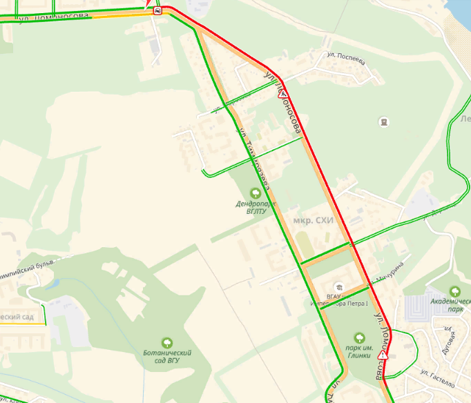 По данным сервису «Яндекс.Карта» на участке улицы Ломоносова растянулась двухкилометровая пробка, которая позволяет двигаться автомобилистам в сторону Московского проспекта со скоростью всего 5 км/ч.
