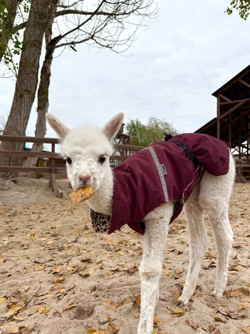Очаровательный белоснежный криа (так называют детёнышей альпак) родился 22 сентября, в разгар осени, и уже успел стать любимцем как сотрудников, так и гостей парка.