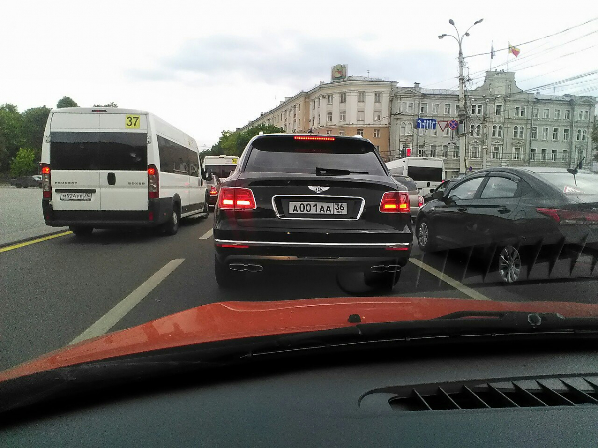 Автомобиль Bentley Bentayga заметили в потоке машин на площади Ленина. Внимание водителей приковала к себе не только элитная модель иномарки, но и государственный номерной знак, который, предположительно, может свидетельствовать о том, что именно в этом дорогом кроссовере передвигается важный воронежский чиновник. Снимок, кстати, был сделан буквально в нескольких шагах от здания правительства Воронежской области.