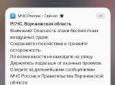 МЧС разослало воронежцам уведомления с памятками, что делать при режиме опасности атаки беспилотных воздушных судов и в случае обнаружения БПЛА.