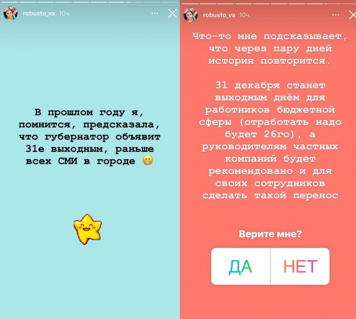 Вместе с тем близкий к правительству воронежский блогер Валерия Робустова, основываясь на интуиции, отметила, что последний день в 2020 году будет нерабочим, правда, не для всех.