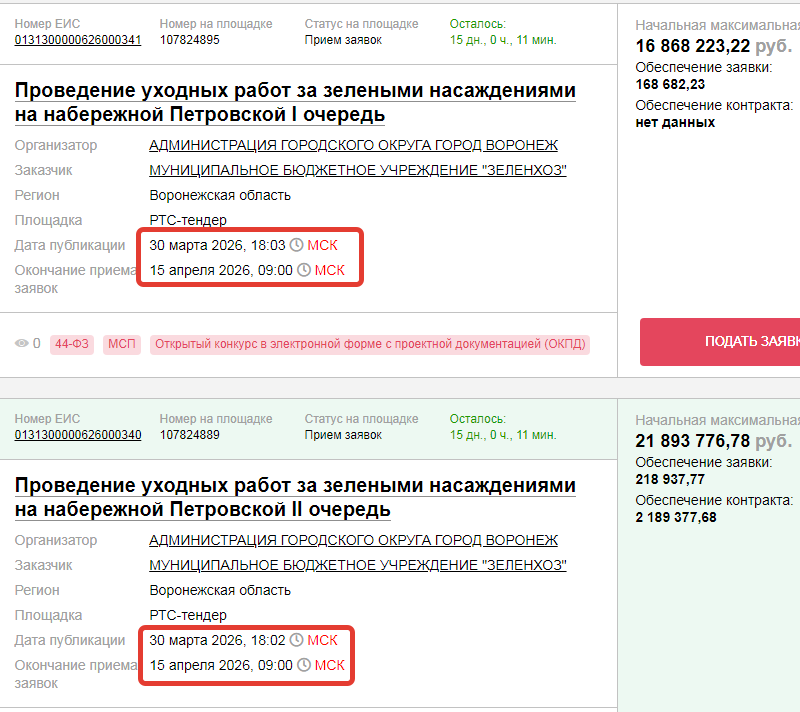 Год назад этот же заказчик, МБУ «Зеленхоз», по результатам прошедших двух аукционов по этим объектам выделил 21,8 млн рублей или примерно на 50 процентов меньше, чем сейчас планируется.