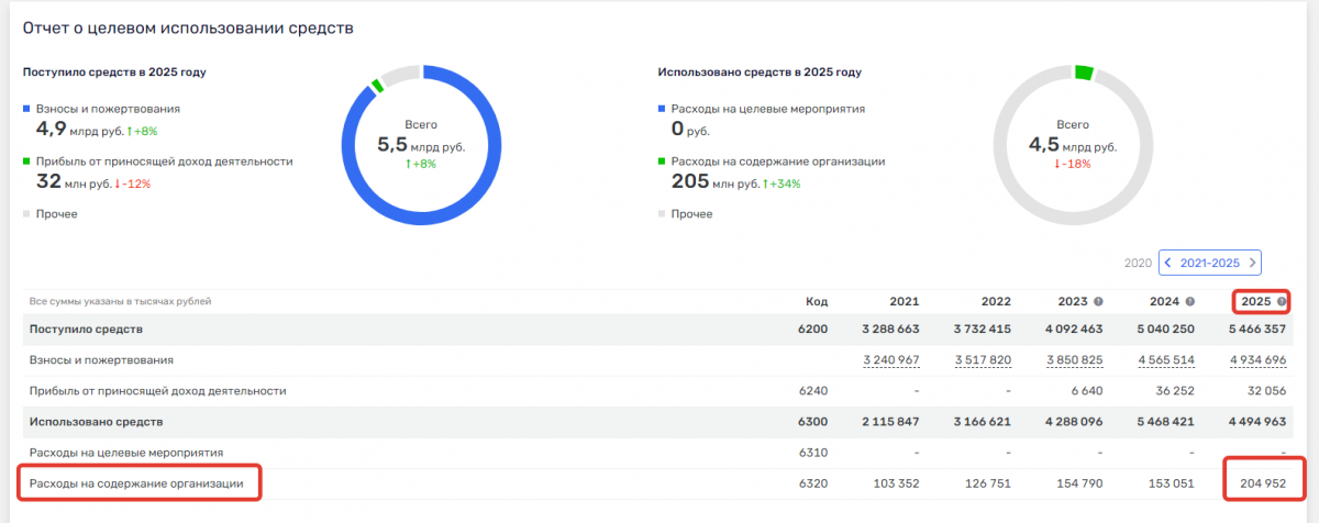 Расходы на содержание организации - Фонд капитального ремонта многоквартирных домов Воронежской области – резко увеличились в 2025 году, они составили без малого 205 млн рублей. Годом ранее содержание этой организации стоило 153 млн рублей.