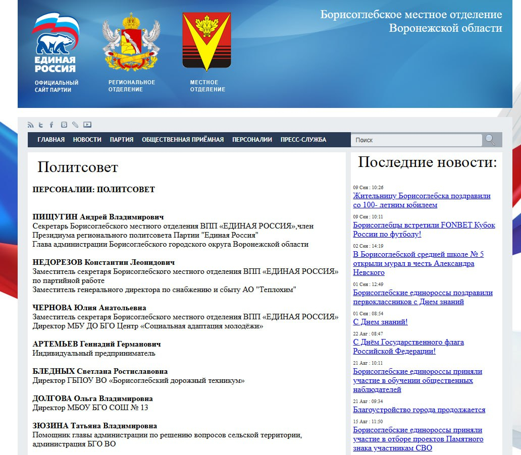О том, что Пищугин является лидером партии власти в Борисоглебске, написано даже на сайте ЕР.