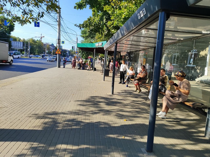 Несмотря на конец часа пик лавочки были облюбованы ожидающими, но стоящих не было совсем. Тоже никакого коллапса, хотя в дни, когда система совсем не справляется, все эти остановки бывают забитыми и до половины десятого утра. Сейчас такого не видим.