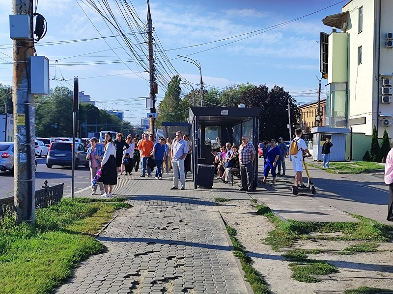 У остановочного павильона присутствует заметное издалека народное собрание. Но эта остановка всегда являлась самым слабым звеном по пути от МП до ГЧ. Если что-то идет не так, здесь собирается самая большая толпа. Как видим, сегодня она тоже есть, но бывало и куда хуже.