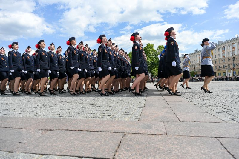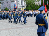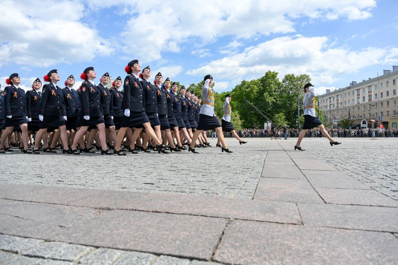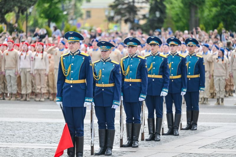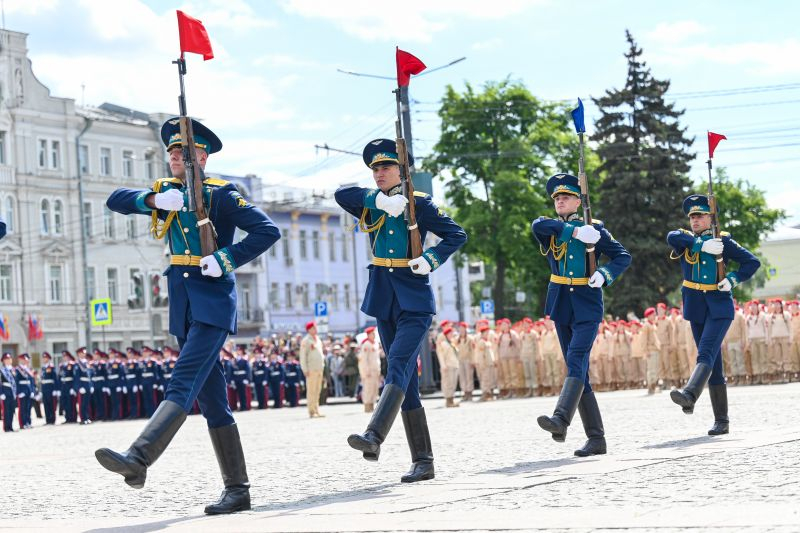 После выступления Александра Гусева была объявлена минута молчания. А затем по площади Ленина стали маршировать курсанты Военно-воздушной академии имени Жуковского и Гагарина, сотрудники МВД, Росгвардии, МЧС, УФСИН, участники Юнармии. Выезжала военная техника.