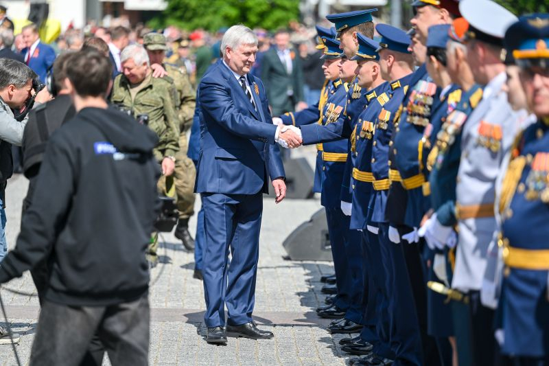 - Эта площадь помнит много парадов 9 мая. Но сегодняшний парад особенный, поскольку в нем встретились героическое прошлое и героическое настоящее. Встретились те, кто завоевал Победу в 1945 году и те, кто борется за нее в наши дни. Участники специальной военной операции защищают мир от неонацизма, следуя ратным традициям прошлого. Хочу выразить сердечную благодарность бойцам, которые сражаются за новую Победу России! – заявил губернатор Александр Гусев.