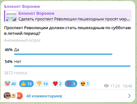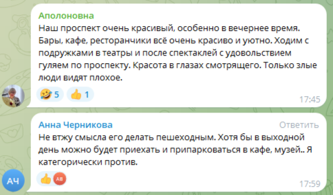 А что по этому поводу думают люди? Мы спросили в телеграм-канале мнение подписчиков – надо ли делать проспект Революции пешеходным.