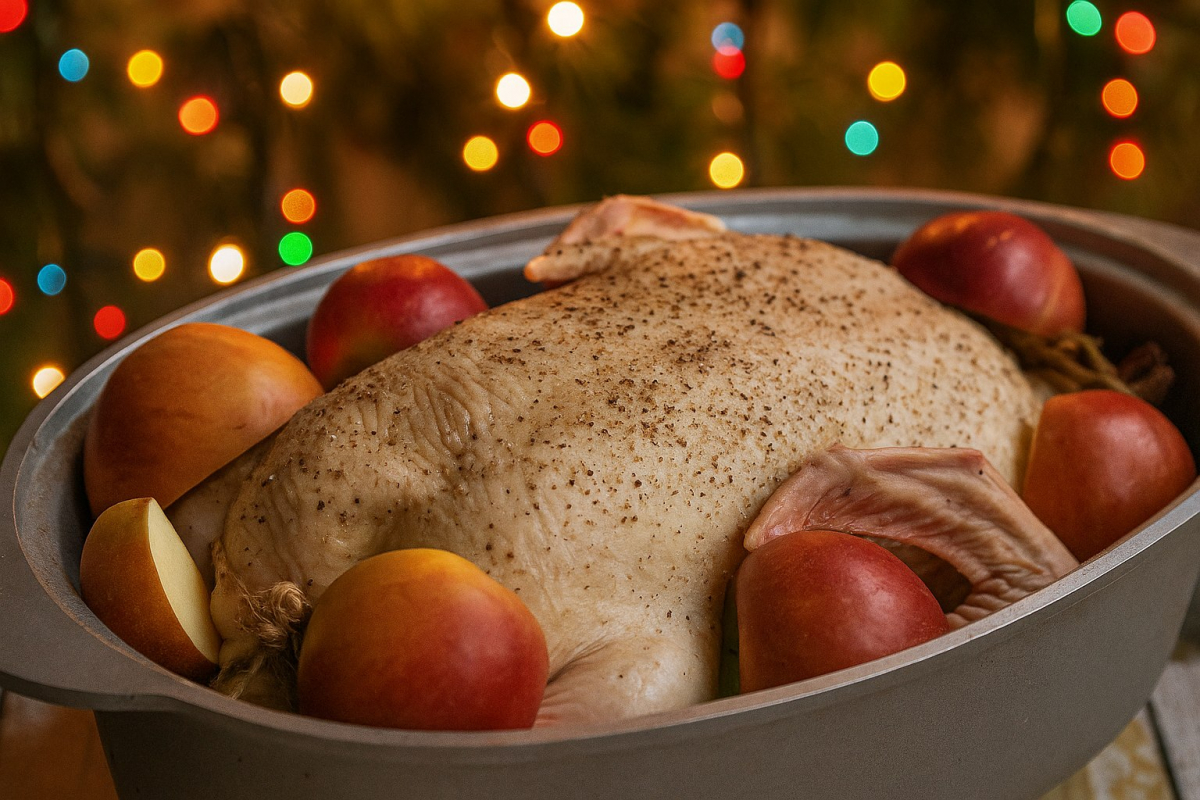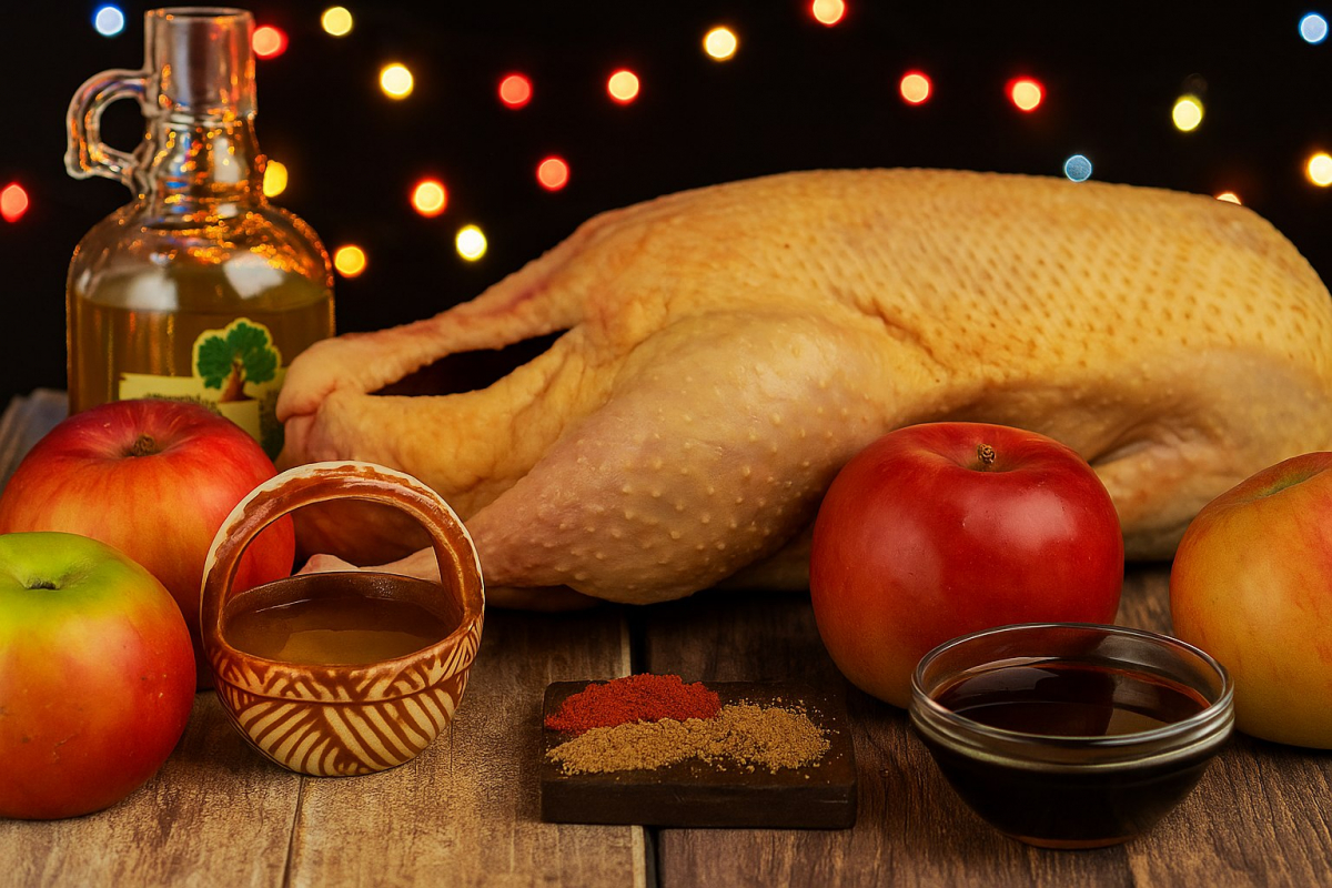 4.Смешайте все специи и натрите ими гуся внутри и снаружи, после чего оставьте его на один час при комнатной температуре. Ему нужно побыть одному…