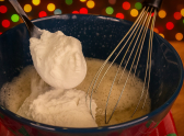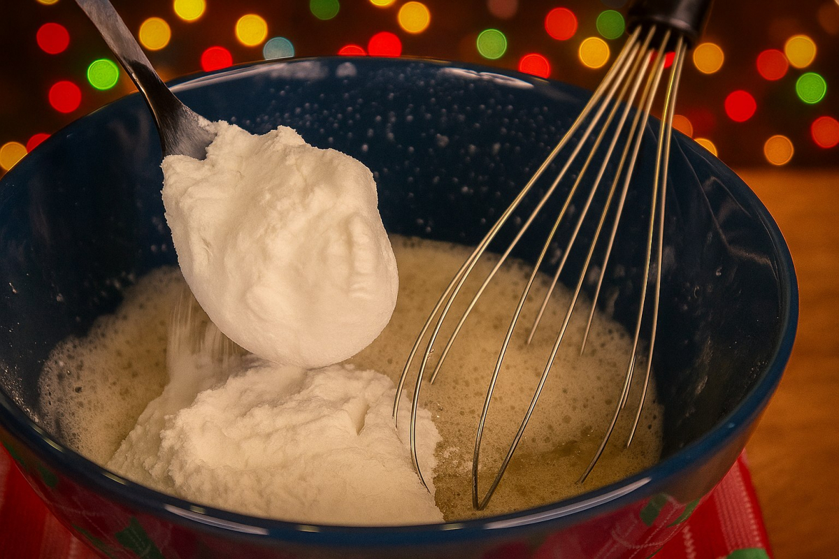 12. Пока печенье остывает, готовим глазурь: взбиваем белки, добавляем сахарную пудру, лимонный сок и ванилин. Консистенция должна быть плотной, но текучей.
