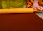 10. Делим тесто на три части. Одну раскатываем на бумаге для выпечки толщиной до 5 мм.
