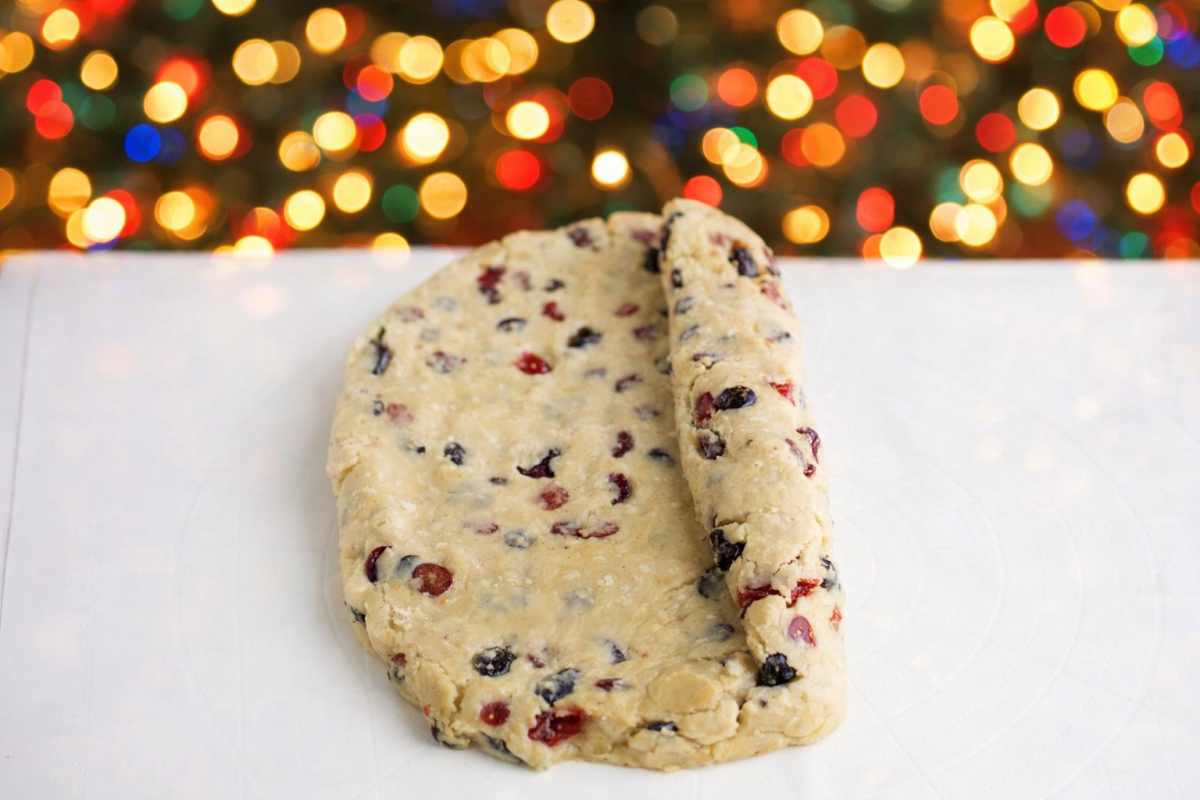 3. Классическая форма штоллена: мысленно разделите овал вдоль на три части. «Верхнюю» треть заверните от центра наружу, а оставшимися двумя третями накройте её сверху, формируя характерный «валик».