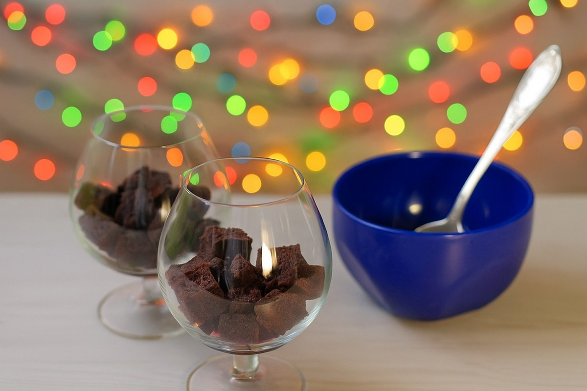 Трайфл «Вишневый подарок» готов! Ставим его в центр стола, выключаем свет, зажигаем гирлянды и наблюдаем, как он исчезает под всеобщие «М-м-м!».