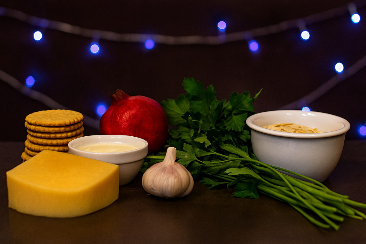 Первым делом достаньте все необходимые продукты. Выбор сыра очень важен: идеально подходят твердые или полутвердые сорта, которые хорошо трутся и имеют выраженный вкус. Очень мягкие или сливочные сыры (как моцарелла) не подойдут — масса получится слишком жидкой и не будет держать форму. Количество майонеза можно слегка корректировать в процессе: с более сухим сыром его может потребоваться чуть больше. Для более изысканного вкуса попробуйте использовать домашний или майонез из перепелиных яиц.