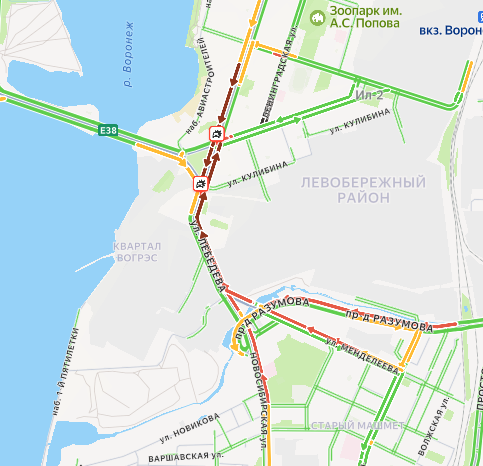 Судя по данным сервиса «Яндекс. Карты», на этом участке левого берега произошло дорожно-транспортное происшествие. Подробности аварии не раскрываются. Вероятно, движение еще осложнено и из-за ДТП.