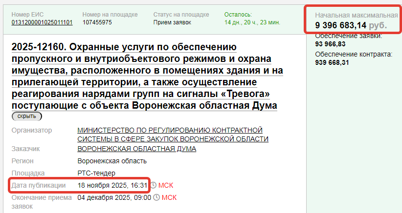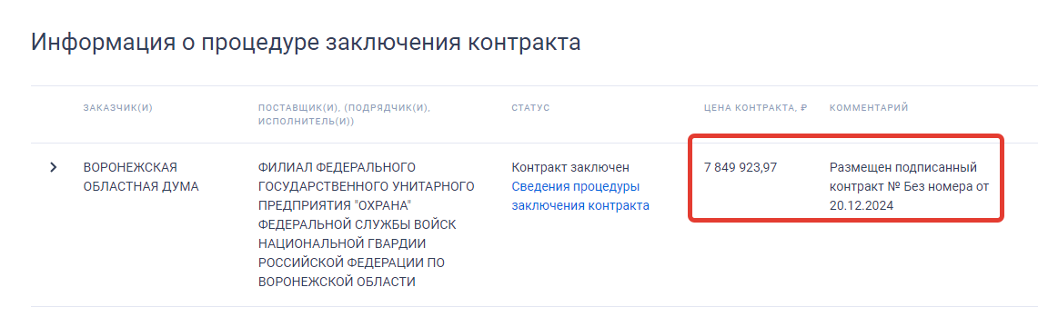 По сравнению с нынешней стоимостью цена сервиса увеличилась почти на 15 процентов, то есть выше уровня прогнозируемой инфляции в 2026 году чуть ли не в 2 раза. Более того, неделей ранее Воронежская городская Дума, в составе которой насчитывается 32 депутата, объявила торги по охране своего здания на ул. Плехановская.