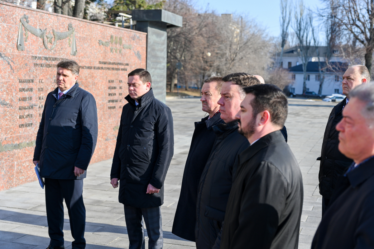 Программа пребывания гостей объединила деловую и историческую составляющие. Одним из ключевых событий стала традиционная церемония возложения цветов и венков к двум значимым мемориалам, расположенным на площади Победы.
