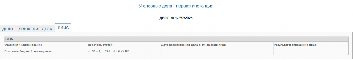 В СИЗО Прытыкина отправили в августе 2025 года. Под стражей он будет еще как минимум до 4 февраля.