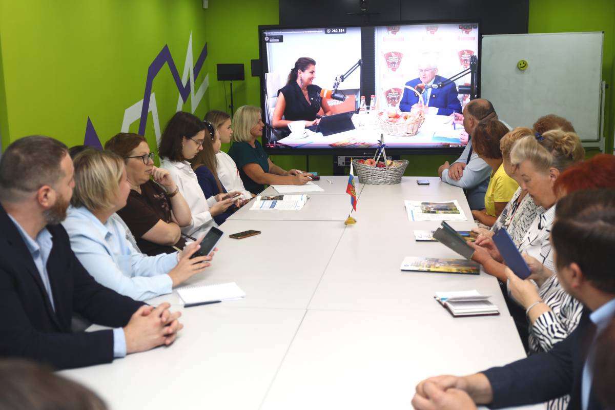 В редакции радио «Комсомольская Правда в Воронеже» накануне 80-летия атомной промышленности состоялся прямой эфир с директором Нововоронежской АЭС Владимиром Поваровым, генеральным директором Неправительственного экологического фонда имени В.И.Вернадского Ольгой Пляминой, заместителем министра природных ресурсов и экологии Воронежской области Александром Царевым. Носят ли сотрудники АЭС дозиметры? Возможно ли организовать пляж рядом с прудом-охладителем НВАЭС? Каким вы видите эко-отчет будущего? Спикеры в течение часа отвечали на вопросы журналистов и зрителей прямой трансляции эфира. Символично, что публичная презентация отчета состоялась на «Яблочный спас». Гостей студии директор НВАЭС угостил яблоками, выращенными в своем саду, в 5 км от АЭС.
