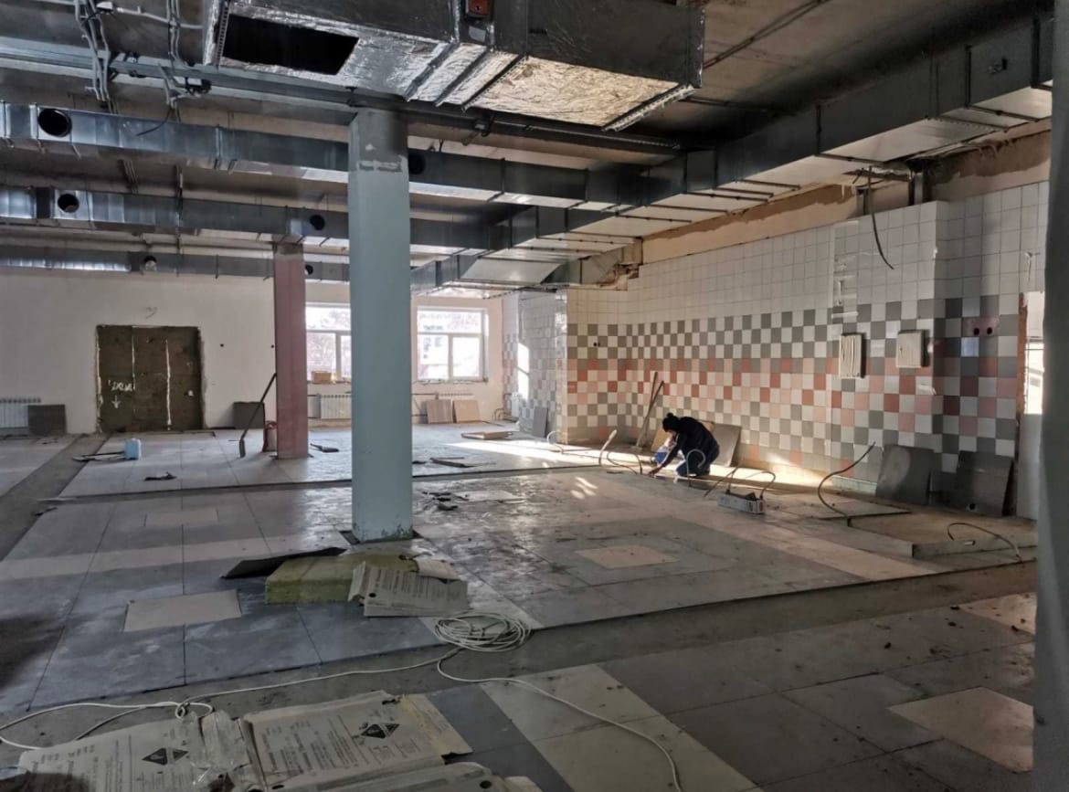Сейчас проводятся кровельные и внутренние отделочные работы, а также работа по инженерным сетям и фасаду. Идет благоустройство.