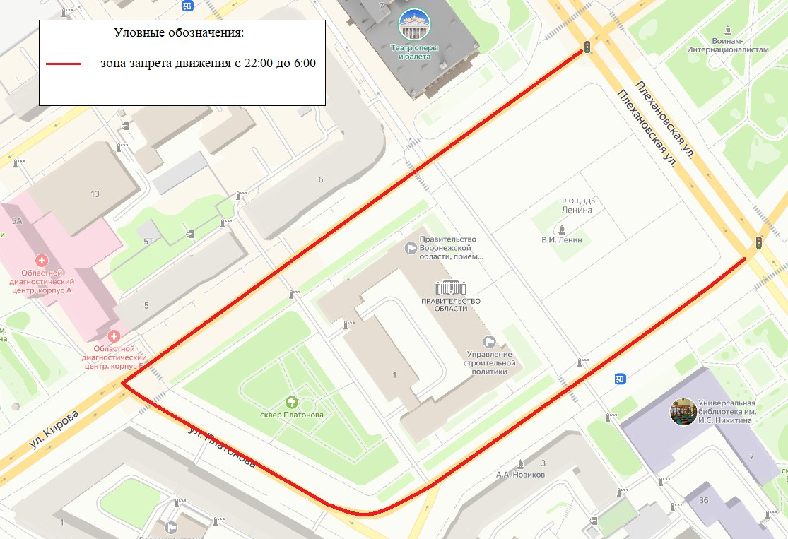 Движение у здания воронежского правительства будут перекрывать каждую ночь