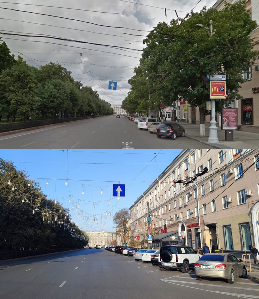 Или им сделали плохую обрезку, как на том же проспекте Революции (там еще и в квадратиках).