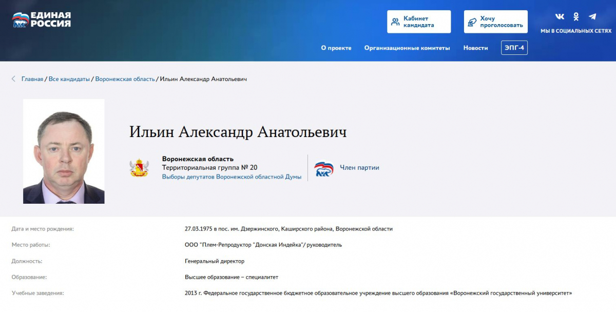 В этой же территориальной группе на предварительное голосование идет действующий депутат областной Думы и предприниматель Александр Анатольевич Ильин. Он руководит сельскохозяйственным предприятием ООО «Плем-Репродуктор «Донская Индейка».