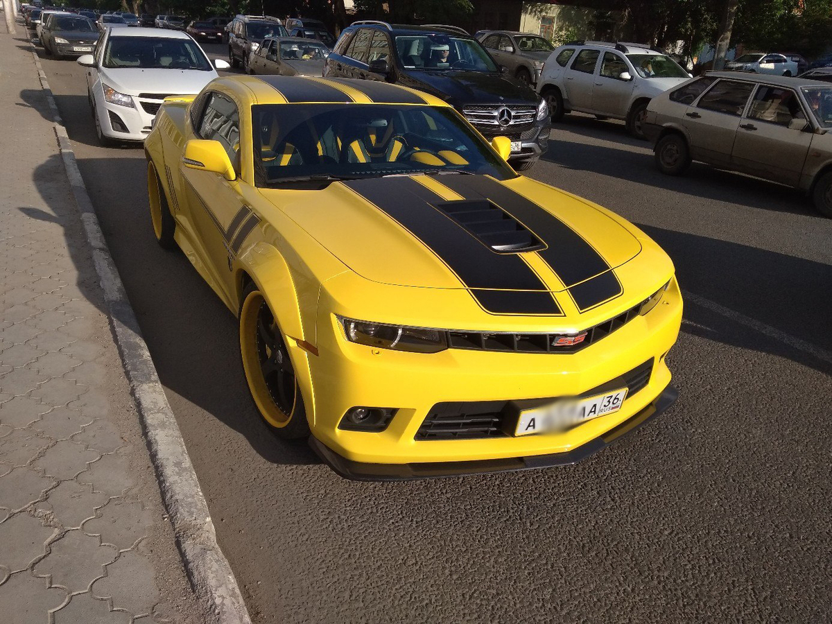 В редакцию "Блокнот Воронеж" читатель прислал фотографию ярко-желтого Chevrolet Camaro SS, припаркованного на улице 9 Января. Машина привлекла его внимание не только крутейшим внешним видом, но и элементами, не характерными для данной модели. Так, сбоку на иномарке были нанесены логотипы "Трансформеров", а сам автомобиль копирует стиль одного из самых популярных героев этого фильма - Бамблби. Также отличались от обычной Camaro и некоторые другие детали.