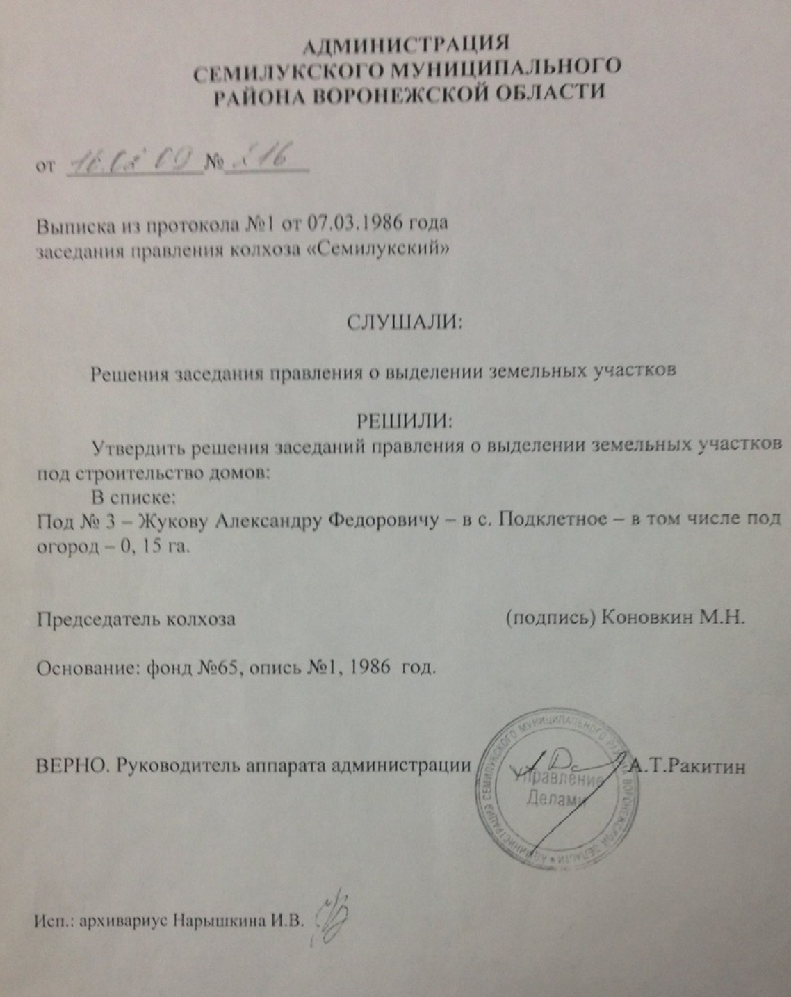 Мужчина пожаловался в прокуратуру Воронежа, которая отправила его жалобу в управу Советского района. Первый заместитель руководителя управы Алексей Мешков объяснил, что в решении правления колхоза не указано, где именно находится участок, поэтому выделять нечего.