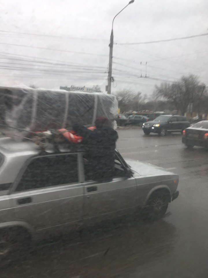 Воронежцы обсуждают опасное действие пассажира отечественной легковушки, которое попало на фото. На опубликованном в Сети снимке видно, что кто-то, не понятно совсем понятно, мужчина это или женщина, высунулся на ходу из окна ВАЗ, чтобы поправить или придержать багаж на крыше машины.