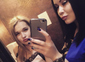 Девушки сфотографировались в зеркало туалета.