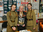 Девушки-волонтеры молодежной организации «В красоте - сила» в военной форме сороковых вручили освободителям Воронежа символичные продуктовые наборы, по составу схожие с теми, что выдавались солдатам Советской армии во время Великой Отечественной войны.