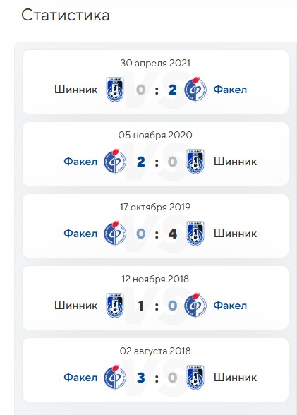 Еще раньше два раза подряд победил «Шинник» с результатами 0:4 и 1:0. Ну и в августе 2018 года победу взял «Факел» со счётом 3:0.