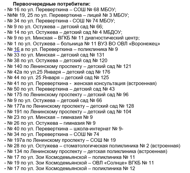 Где не будет горячей воды и тепла в Воронеже