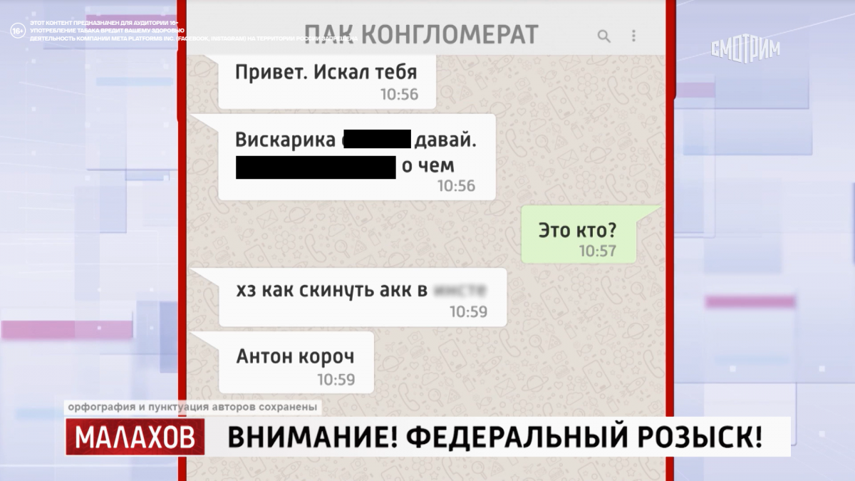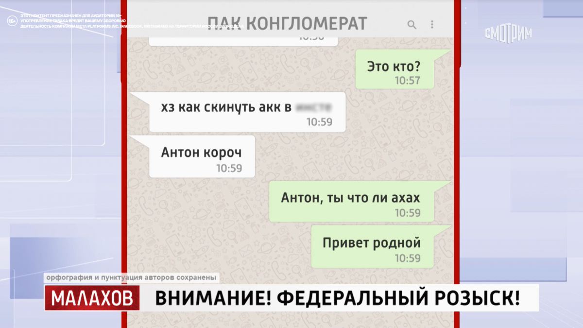 скриншот: Первый канал, программа «Малахов. Внимание! Федеральный розыск!» 23.09.2025