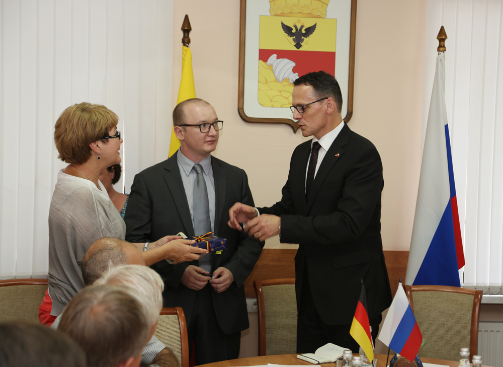 Немецкого гостя заинтересовал опыт Воронежа в адаптации иммигрантов к российским реалиям. Он сказал, что для Германии сейчас этот вопрос выходит на первый план. И, если официальные власти ФРГ заявляют, что все в порядке, то на бытовом уровне видны неразрешенные проблемы. Особенно, вопрос мигрантов чувствуется в небольших немецких городках и селениях.