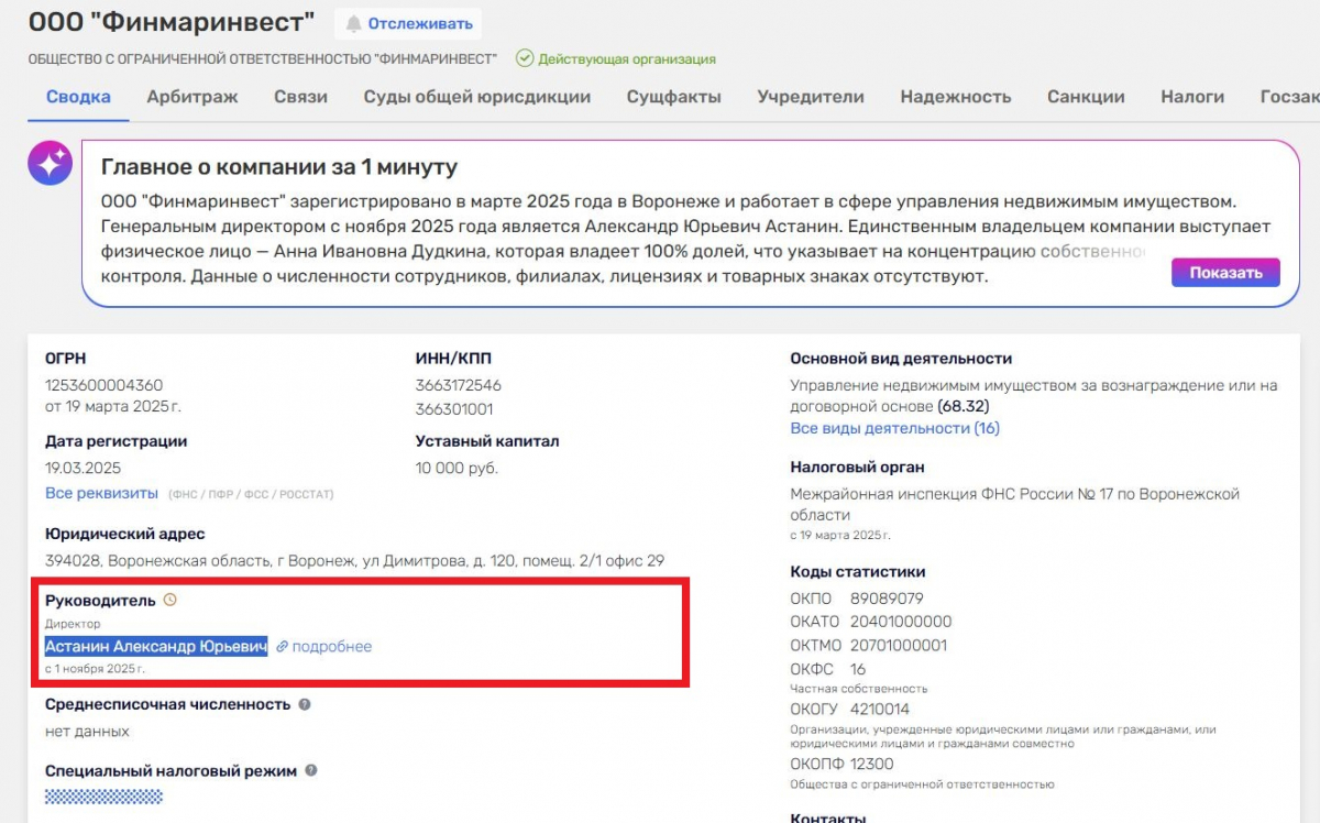 Судя по данным из открытых источников, данную УК возглавляет Александр Астанин.