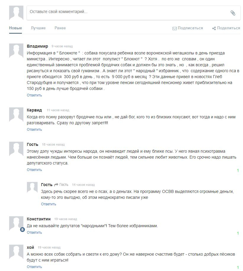Под тем материалом читатели «Блокнот Воронеж» разразились огромным количеством гневных комментариев. Пользователи стали писать, что Рымарь является противником эвтаназии, поскольку бродячие животные еще не напали на него или его близких. Кто-то и вовсе стал говорить, что депутату «чужды интересы народа».