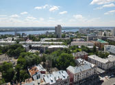 Мы со своей стороны покажем вам фото центра Воронежа с высоты птичьего полета. На кадрах вы можете увидеть, как «заплатки» деревьев затерялись среди домов и зданий разной этажности. Где-то зеленные пятна больше, где-то меньше, где-то их и вовсе не видно.