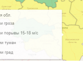 В регионе вместе с тем наблюдается желтый уровень погодной опасности в том числе и из-за града.